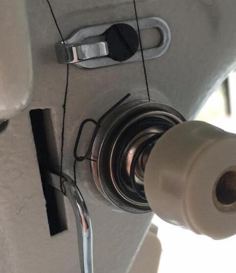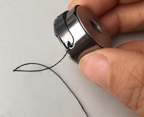 8、引線后一步穿過機針孔,穿線完成。